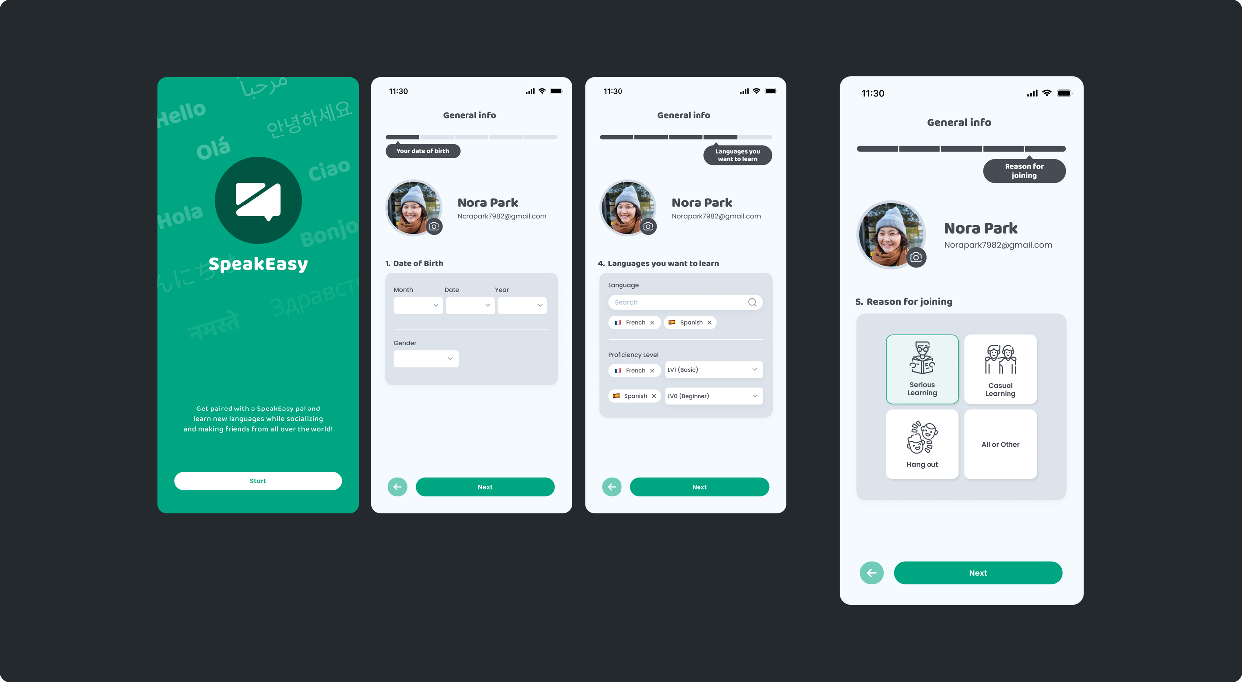 SpeakEasy is a language learning app that connects users with compatible native speakers, fostering meaningful learning through social interaction.